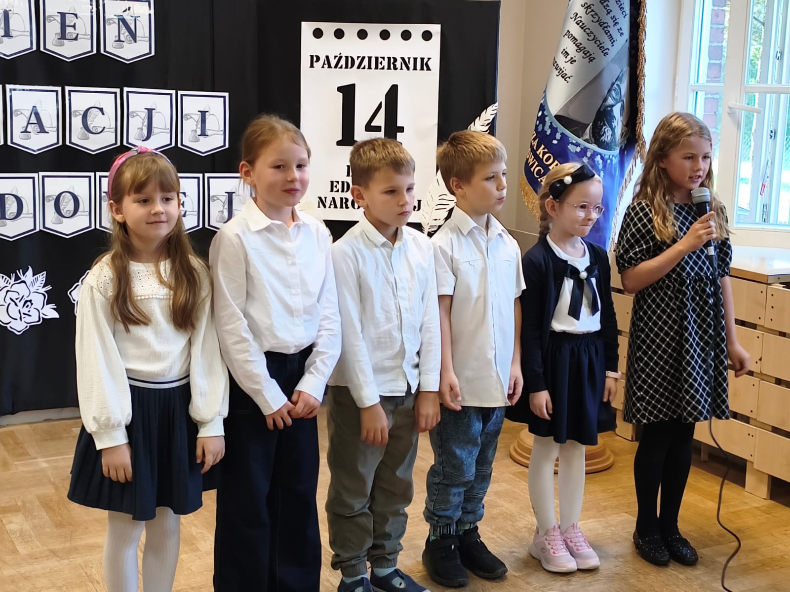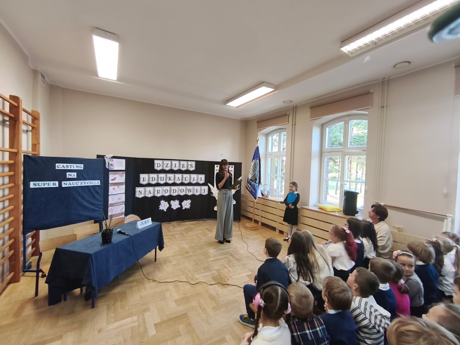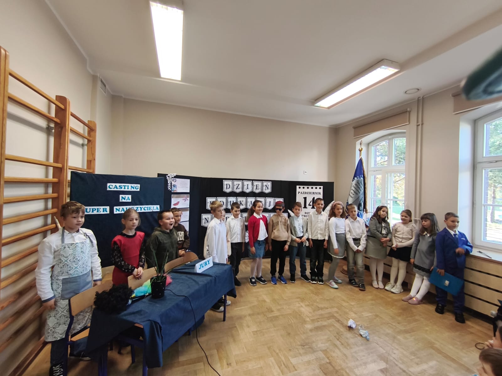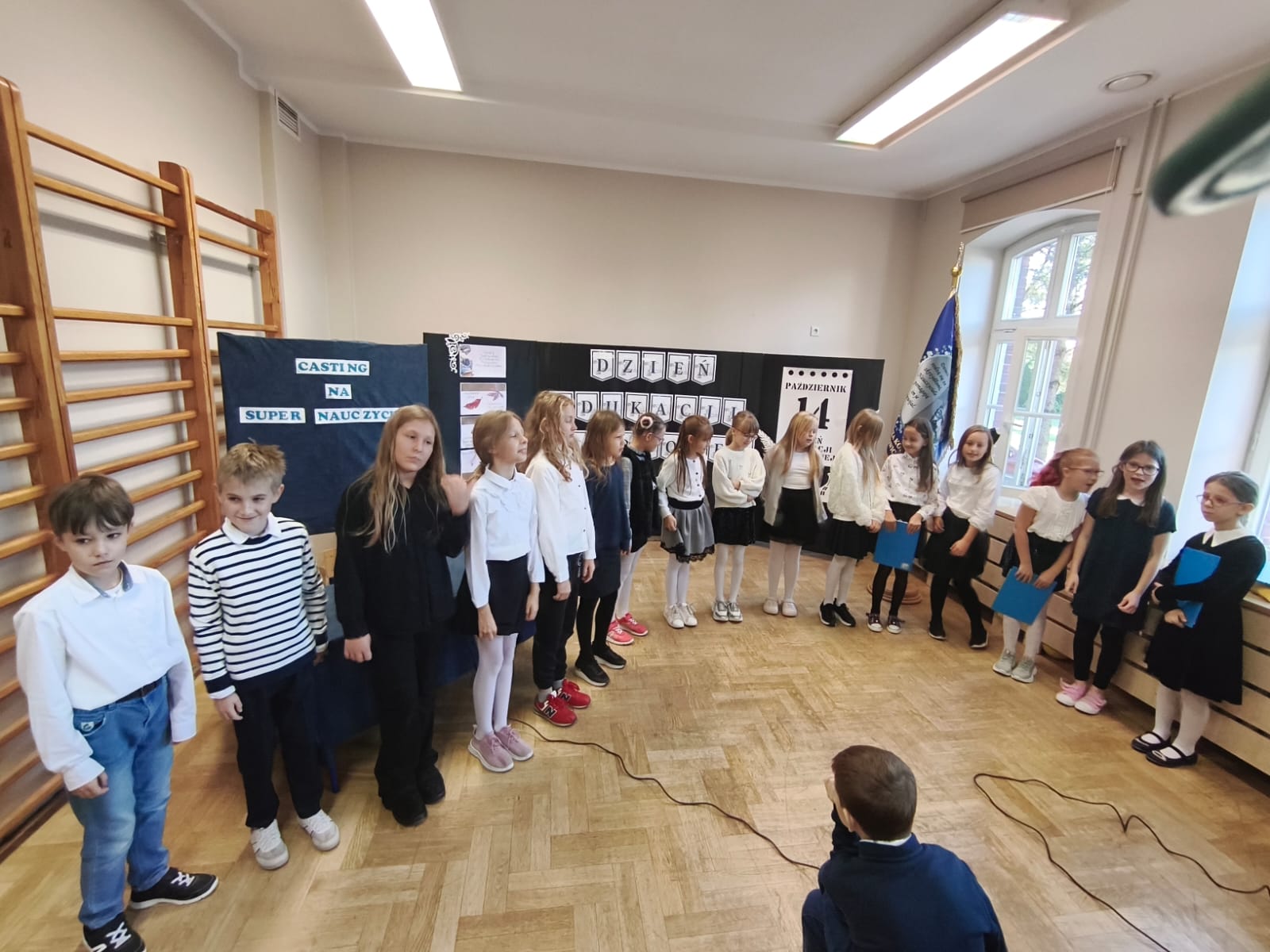 W poniedziałek w Szkole Podstawowej w Ratowicach odbył się uroczysty apel z okazji Dnia Edukacji Narodowej, który został zaprezentowany w dwóch turach: dla klas 0–4 oraz 5–8. Wydarzenie miało miejsce w sali gimnastycznej, która na ten dzień zamieniła się w prawdziwą scenę artystyczną — dzięki pięknej dekoracji przygotowanej przez panią Sylwię Kopczyk.