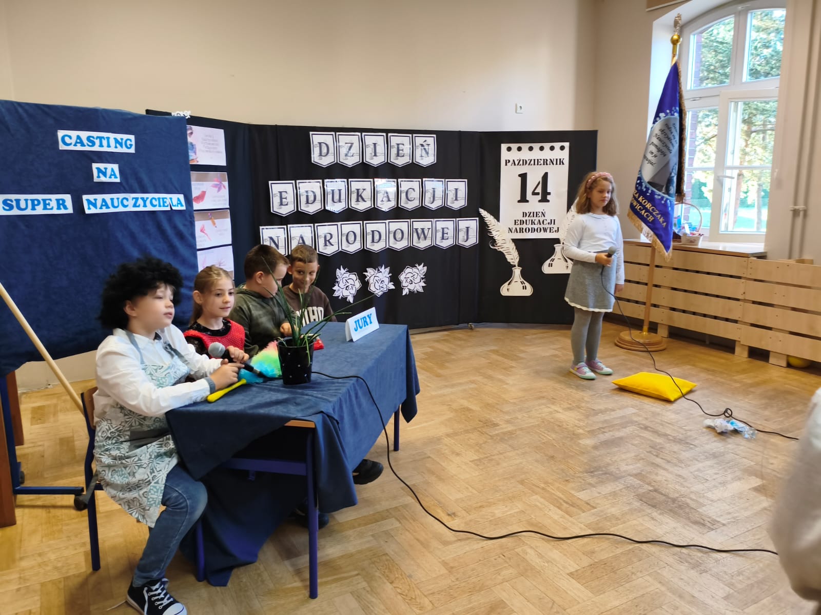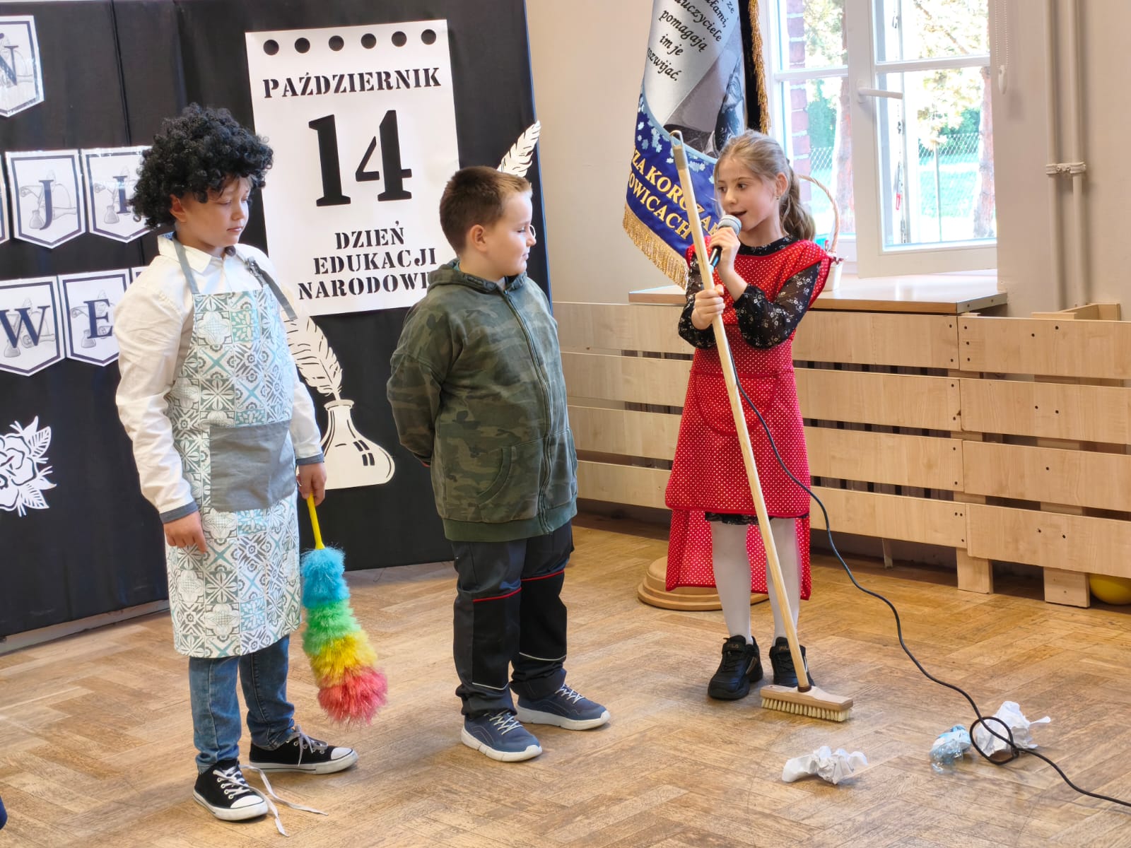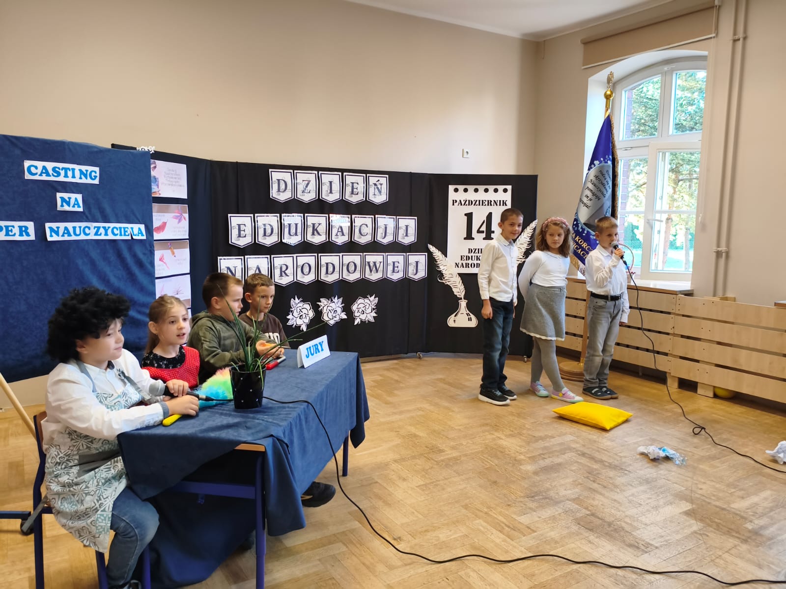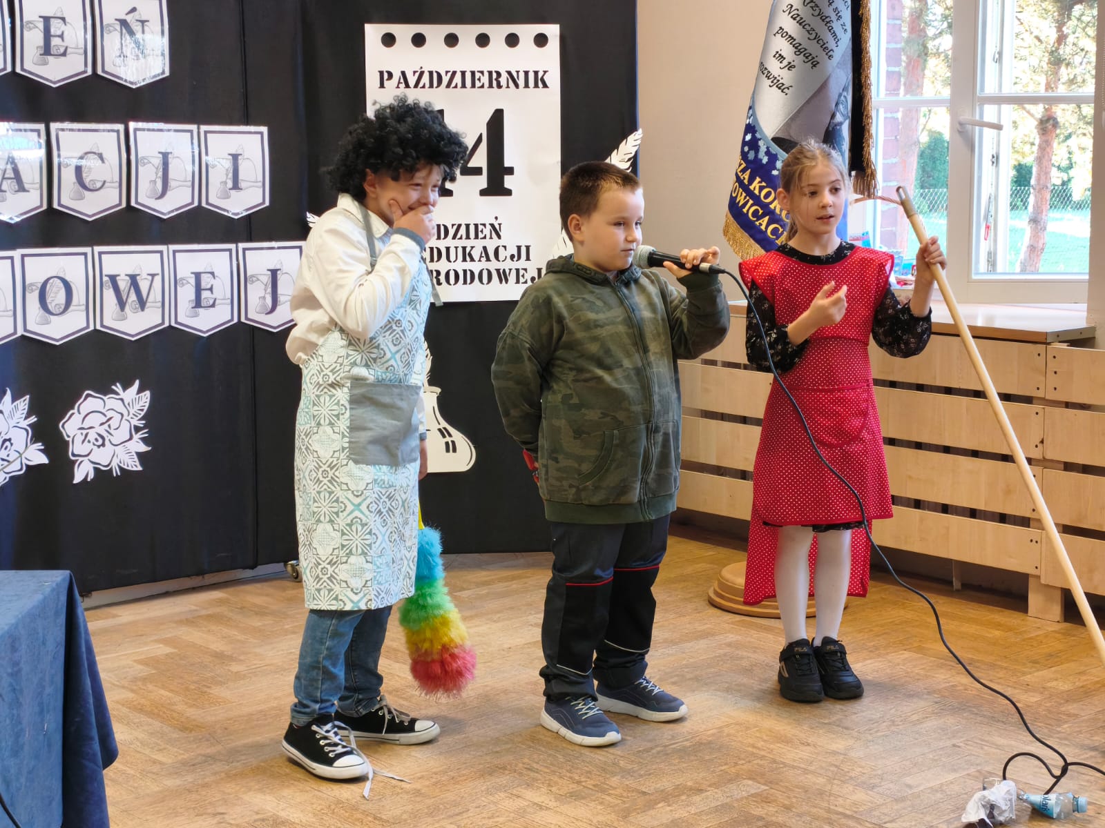 W poniedziałek w Szkole Podstawowej w Ratowicach odbył się uroczysty apel z okazji Dnia Edukacji Narodowej, który został zaprezentowany w dwóch turach: dla klas 0–4 oraz 5–8. Wydarzenie miało miejsce w sali gimnastycznej, która na ten dzień zamieniła się w prawdziwą scenę artystyczną — dzięki pięknej dekoracji przygotowanej przez panią Sylwię Kopczyk.