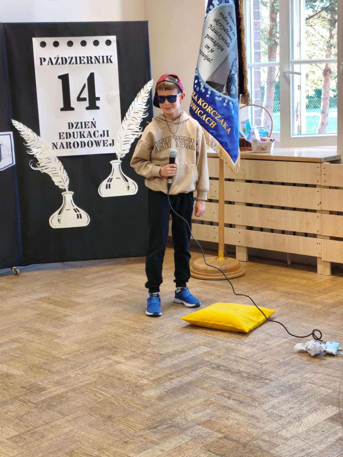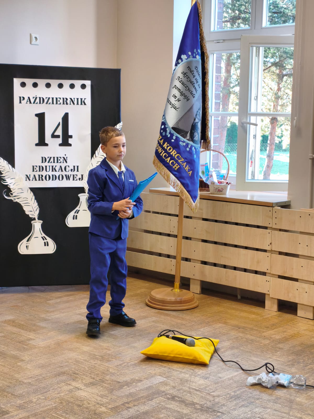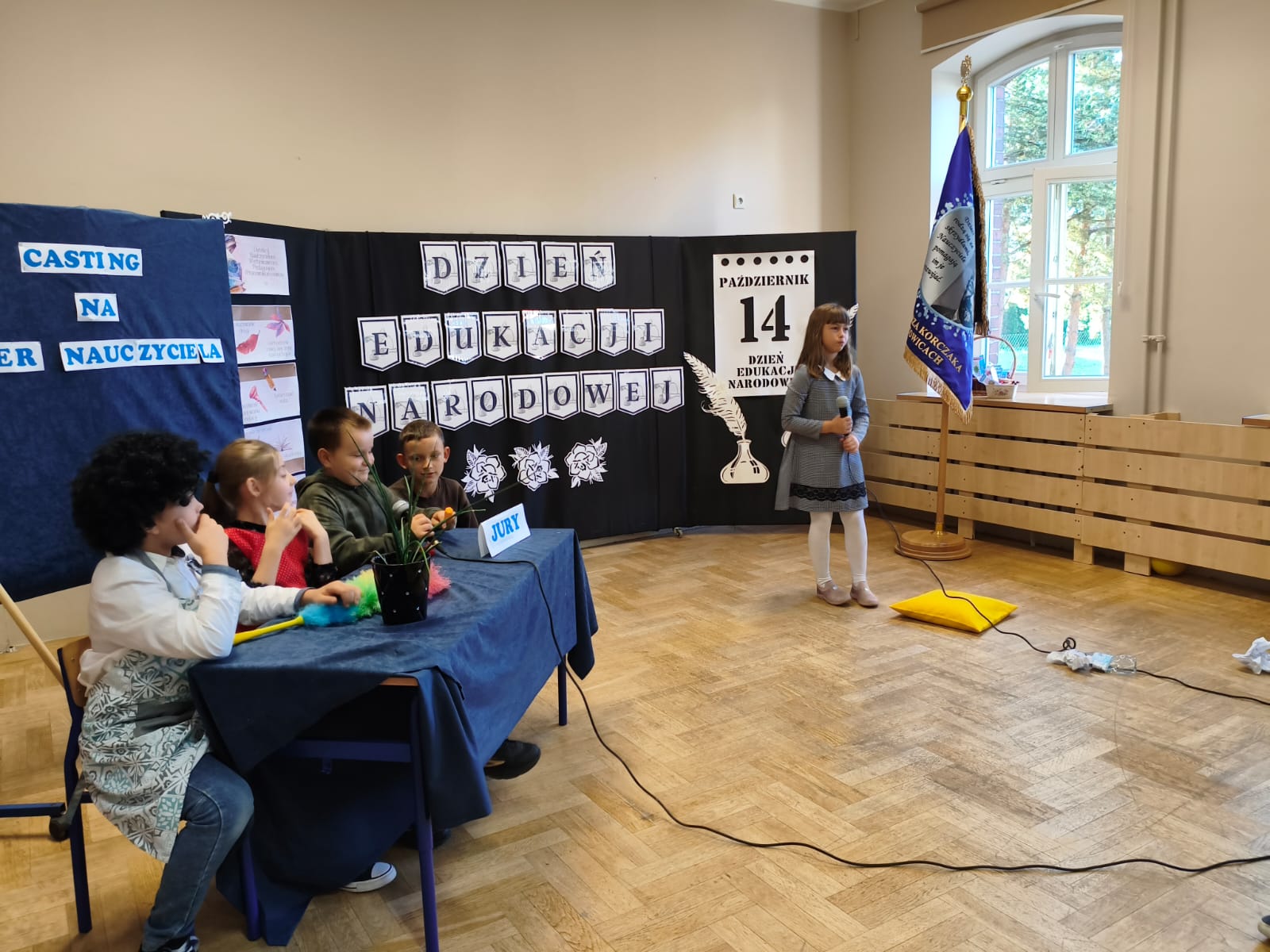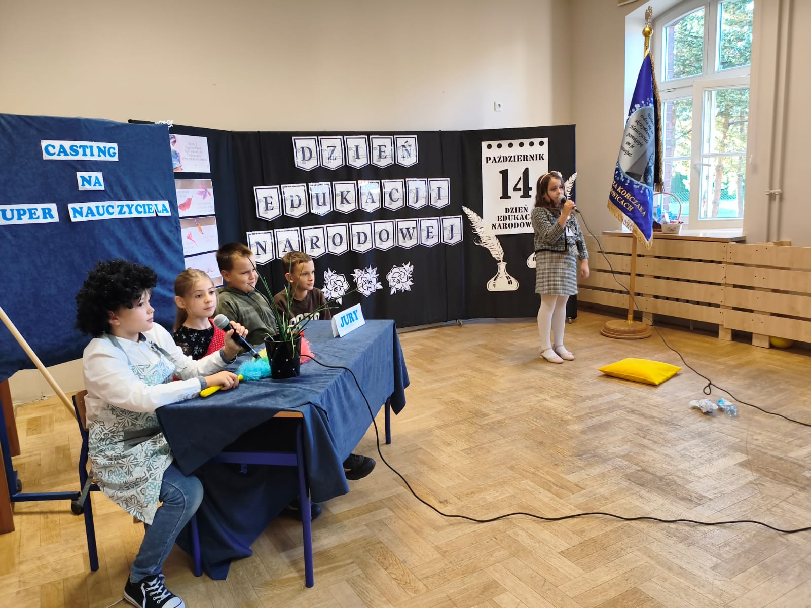 W poniedziałek w Szkole Podstawowej w Ratowicach odbył się uroczysty apel z okazji Dnia Edukacji Narodowej, który został zaprezentowany w dwóch turach: dla klas 0–4 oraz 5–8. Wydarzenie miało miejsce w sali gimnastycznej, która na ten dzień zamieniła się w prawdziwą scenę artystyczną — dzięki pięknej dekoracji przygotowanej przez panią Sylwię Kopczyk.