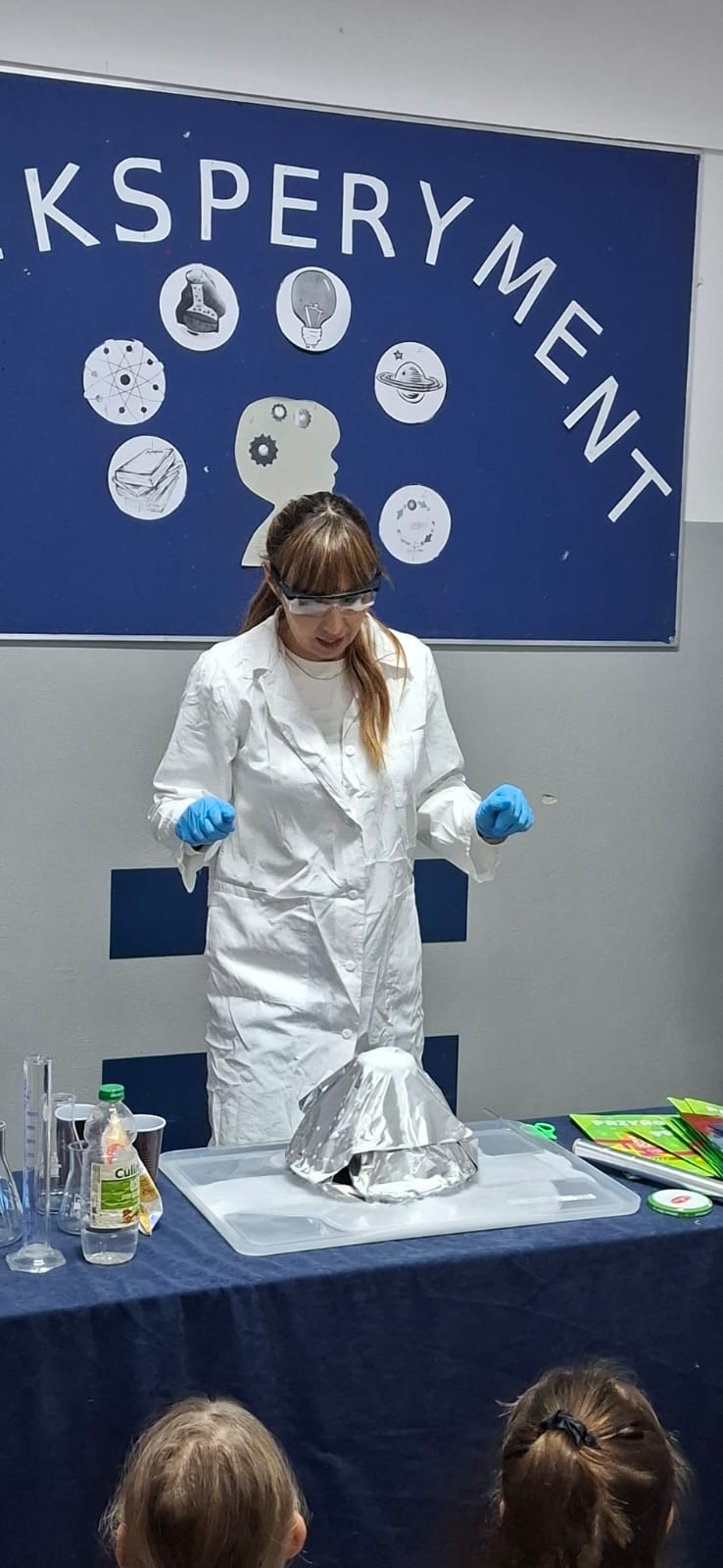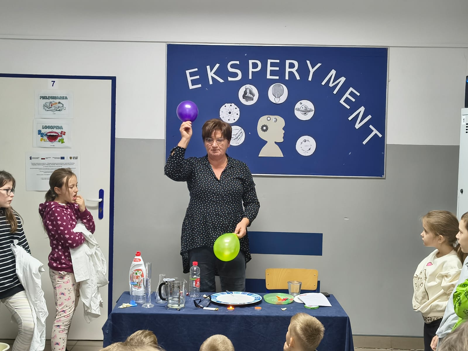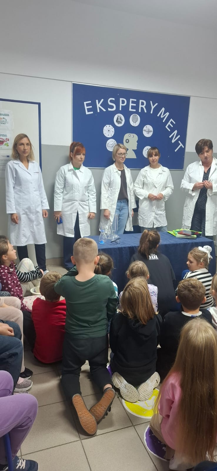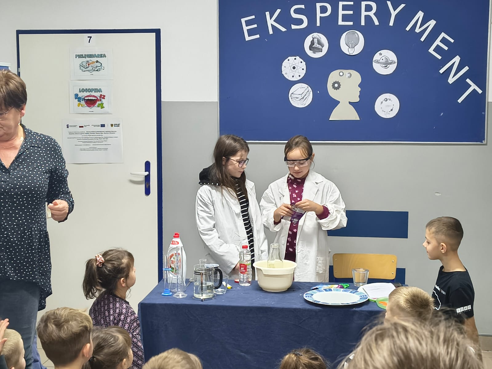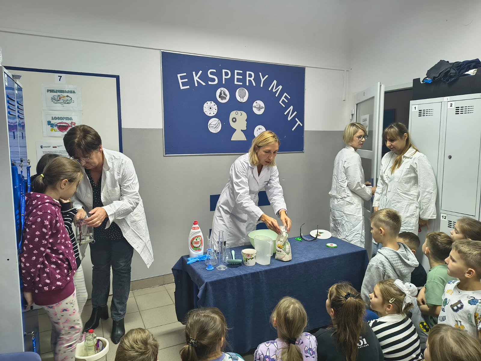 W czwartek, tuż przed dniem wolnym i uroczystością Wszystkich Świętych, uczniowie klas I–III mieli okazję uczestniczyć w wyjątkowym Dniu Eksperymentów. Wydarzenie zostało starannie przygotowane przez nauczycielki, które zadbały o każdy szczegół – od merytorycznego przygotowania po profesjonalny wygląd: fartuchy, rękawiczki i okulary ochronne robiły ogromne wrażenie!