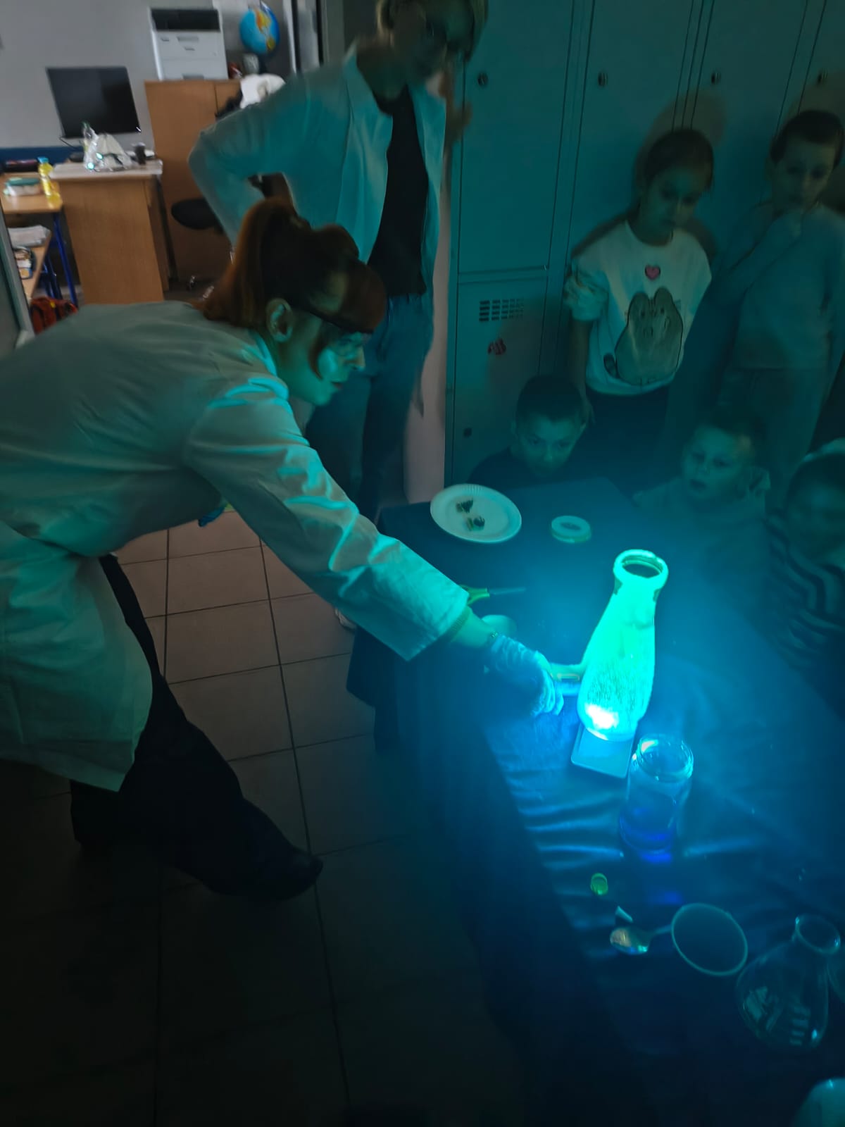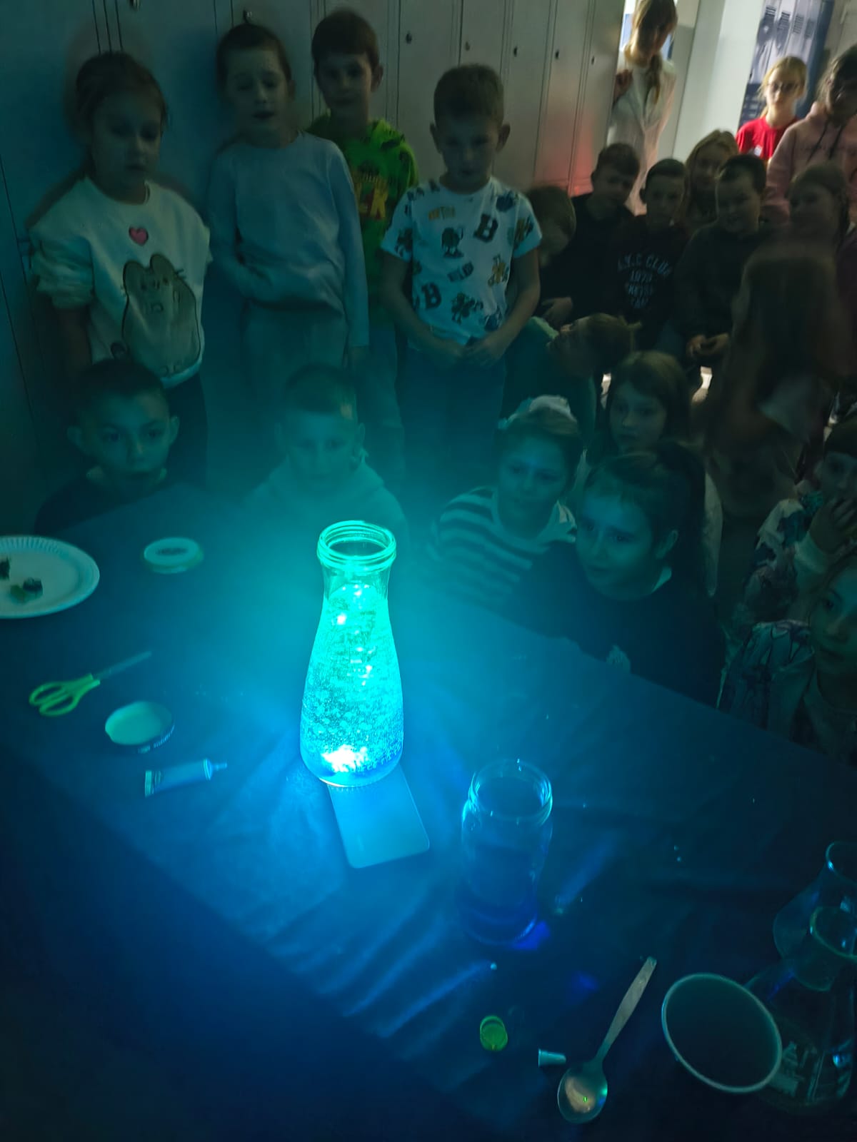 Dzieci były zachwycone – z zaciekawieniem obserwowały reakcje, zadawały pytania i aktywnie uczestniczyły w pokazach. To był dzień pełen nauki przez zabawę, który z pewnością rozbudził w nich ciekawość świata.