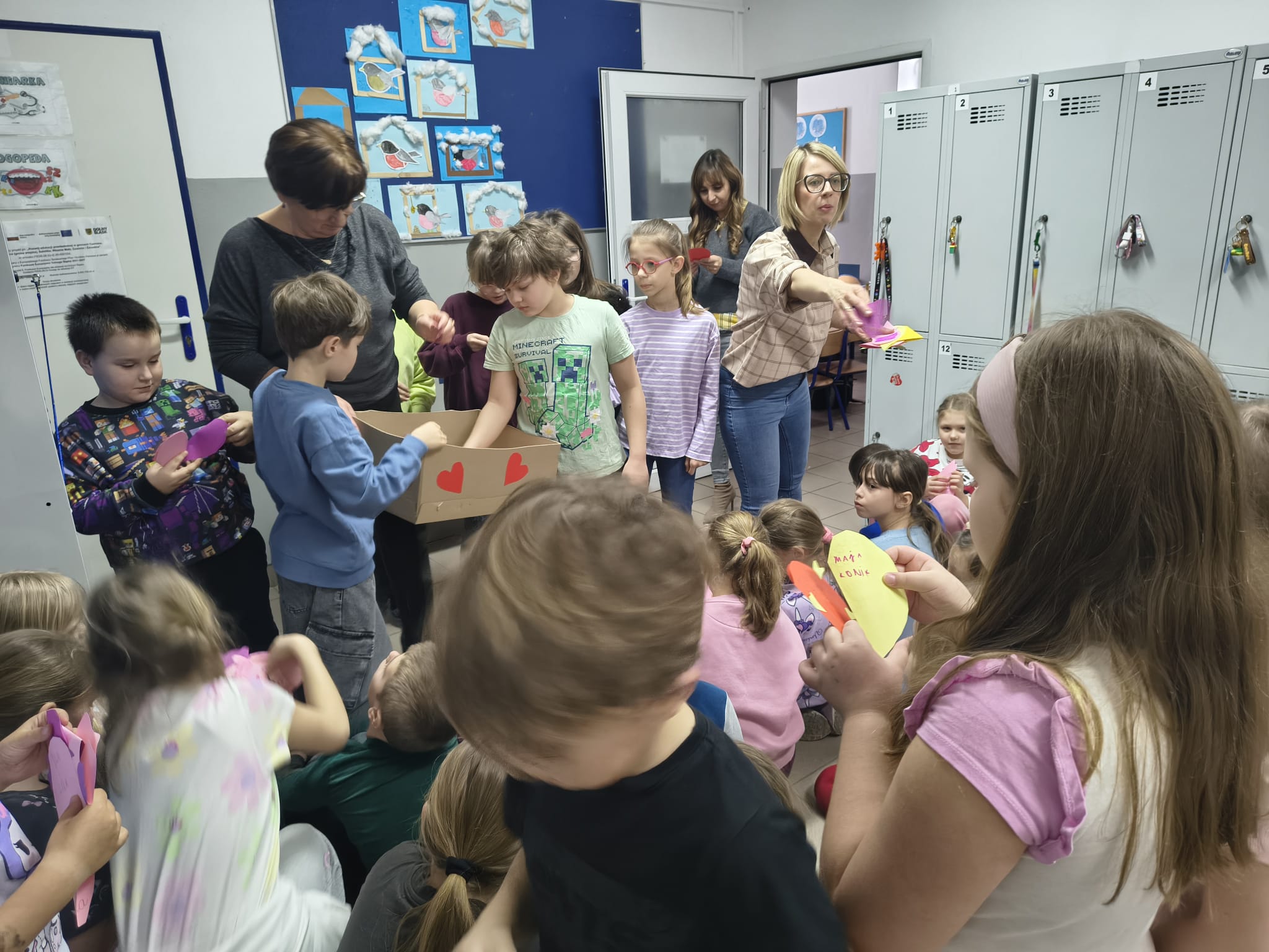 W naszej szkole świętowaliśmy Walentynki tuż po powrocie z ferii. Podczas lekcji uczniowie przygotowywali kolorowe serduszka, w których zapisywali życzenia dla kolegów i koleżanek. Następnie Samorząd Uczniowski zorganizował rozdawanie kartek walentynkowych, a dodatkowo częstował wszystkich uczniów słodkim upominkiem. To był miły i pełen serdeczności dzień, który wprowadził wszystkich w radosny nastrój.