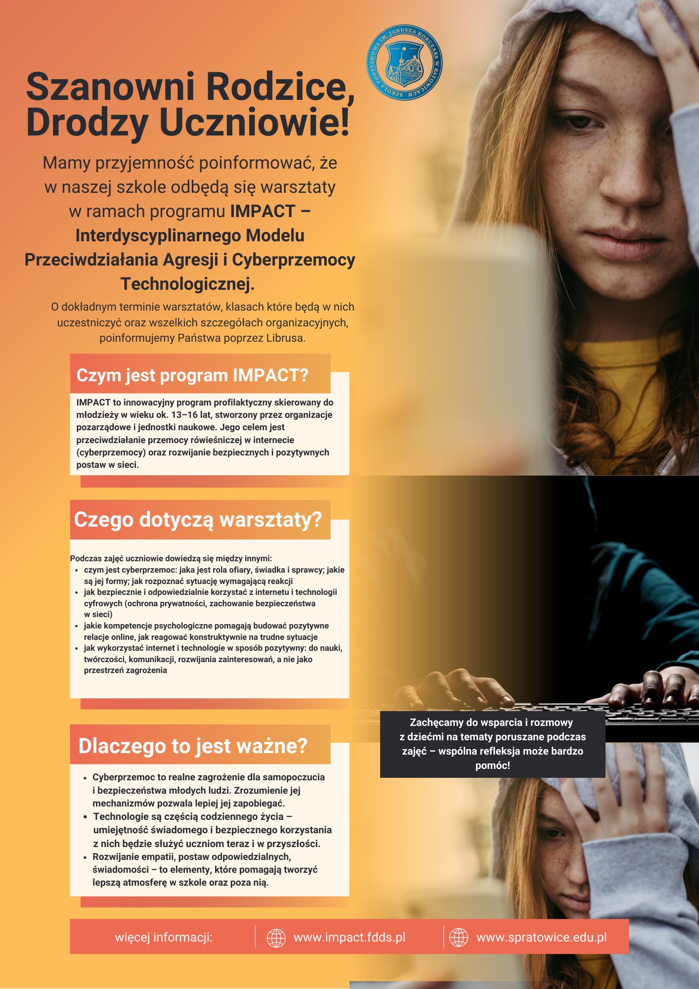 Zachęcamy wszystkich uczniów do aktywnego udziału w warsztatach – to szansa, aby stać się bardziej świadomym użytkownikiem internetu i wspierać swoich rówieśników.